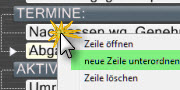 - Zum Einfuegen neuer Zeilen mit der Maus gibt es jetzt auch bei geschlossenen Zeilen eine 1-Klick-Lösung (nur Ziele-Ansicht): Beim Überqueren zulässiger Stellen mit der Maus wird ein blauer Einfügepfeil gezeigt. Durch Anklicken öffnet sich eine neue Zeile.