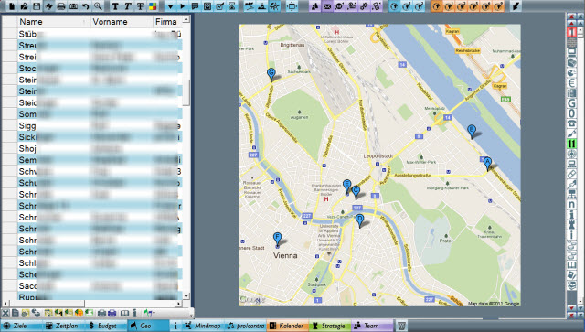 way, meineZIELE also displays the map with geographical information when you open the contact details window.