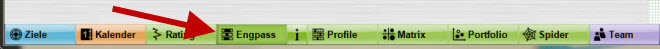 Ansichten wählt man über die Schaltflächen am unteren Rand des Programmfensters. Wählen Sie zunächst den Strategieteil (grün). Klicken Sie dann auf "Engpass".