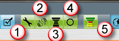 mehrere grüne Buttons zu sehen. Wählen Sie die Parameter-Einstellung (1). (Die Einstellungen der Buttons 3 (Skala einblenden), 4 (RIng um