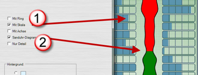Für manche Überlegungen zu Engpässen verwendet man zwei Skalen links und rechts der eigentlichen Engpassgraphik. Diese Skalen wählen Sie bei diesen Zusatzeinstellungen aus (1):