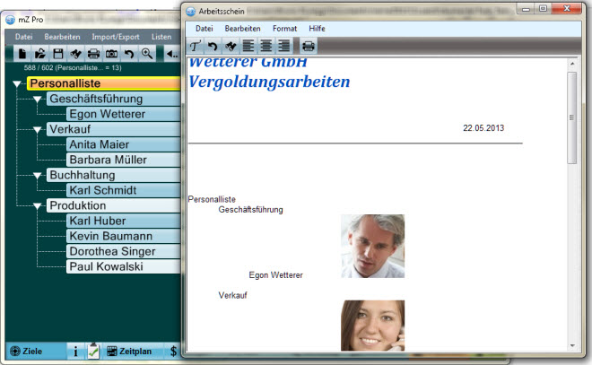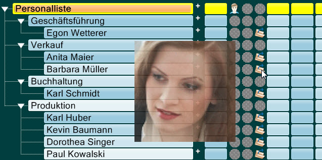 Herr Wetterer hat eine kleine Personalliste mit Bildern in seiner Zielegliederung angelegt.