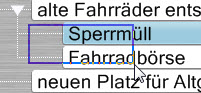 Jeden Eintrag können Sie einfach mit der Maus auf einen anderen Eintrag ziehen und schon wird er vor diesen Eintrag eingeordnet. Sie klicken dazu mit der linken Maustaste auf den Anfasser links von der Aufgabe, halten die Maustaste gedrückt und bewegen die Maus. Während der Verschiebung nimmt der Curser die Form des Textes an. Während des Verschiebevorgangs kann eine verschlossene Struktur durch Bewegung des Cursors über das Dreieck geöffnet werden. Sie können gleichzeitig mit der Verschiebung auch die Hierarchie-Ebene verändern.