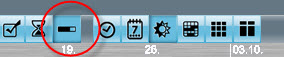 Sowohl die Terminangaben als auch Zeitangaben (in der Stundenansicht) stimmen mit den Terminangaben der jeweiligen Zeile überein. Um Zeitangaben zu sehen, muss der Kalender auf dem richtigen Tag stehen. In der Stundenansicht gibt es deshalb die Möglichkeit, den Monatskalender zuzuschalten und einen Tag auszuwählen. Außerdem kann man sich über die Dreiecke der Überschriftenzeile um einzelne Tage durch die Zeit bewegen. Der gewählte Tag ist immer in das Diagramm eingeblendet.