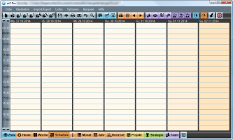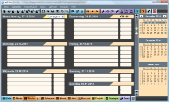 Rechts findet die zeitliche Planung statt. Hier stehen Ihre Termine. Sie können zwischen dem Tages-Kalenderblatt und zwei zielorientierten Ansichten wählen.