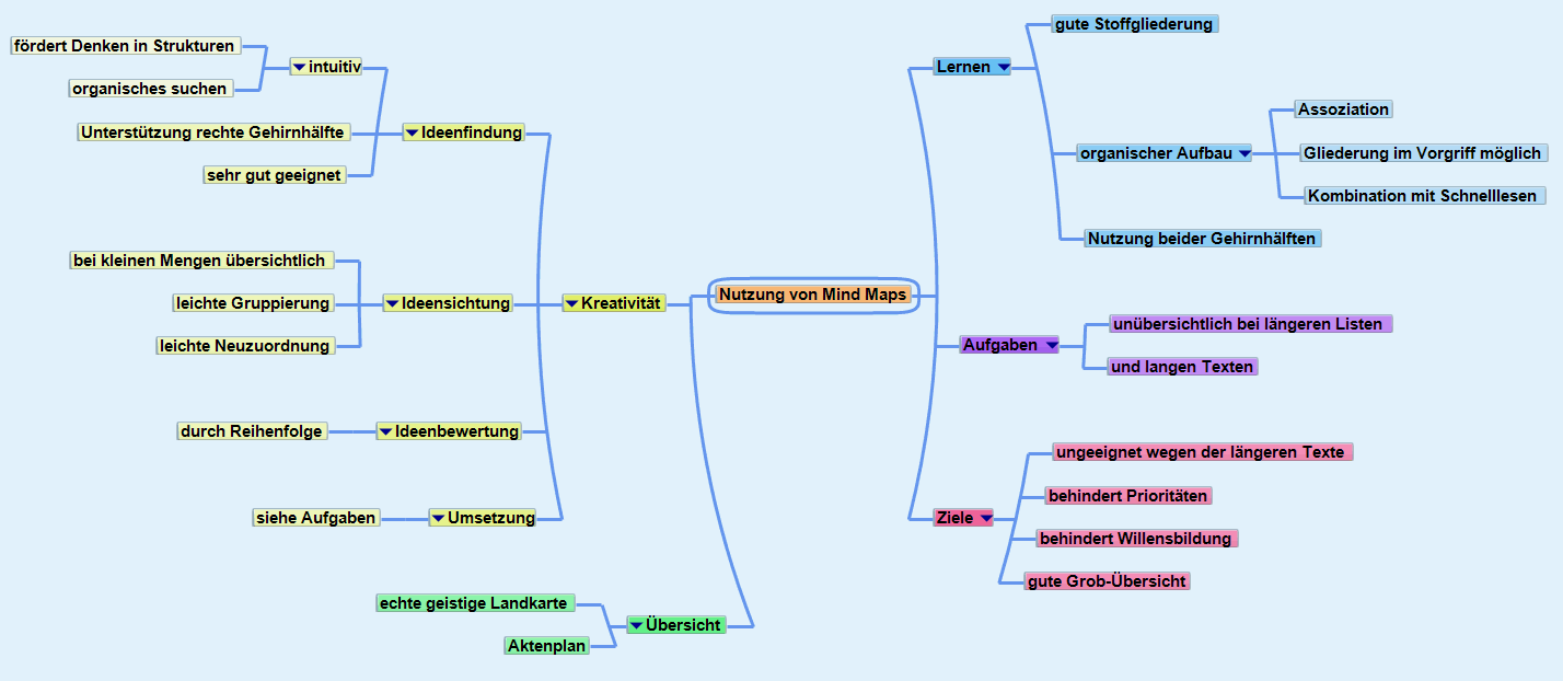 Dafür gibt es eine Vielfalt weiterer Ansichten und Funktionen. Nur klare Ziele sind erreichbar. Mind Maps klären Gedanken. Ideen nehmen Gestalt an. Wie von Zauberhand lernt man leichter. Man versteht mehr und wird leichter verstanden.